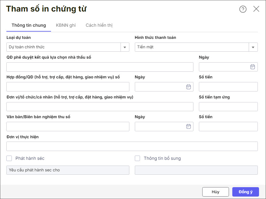 Bước 2: Khai báo tham số in và nhấn Đồng ý.