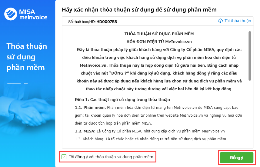 – Nếu đơn vị chưa xác nhận thỏa thuận sử dụng phần mềm và chưa hoàn thành các bước khai báo bắt đầu sử dụng trên meInvoice: