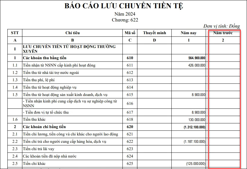 Bài viết này hướng dẫn anh chị cách nhập và hiển thị số liệu ở cột năm trước trên báo cáo lưu chuyển tiền tệ (B03/BCTC) theo Thông tư 24/2024/TT-BTC, giúp báo cáo đầy đủ thông tin so sánh giữa các năm.