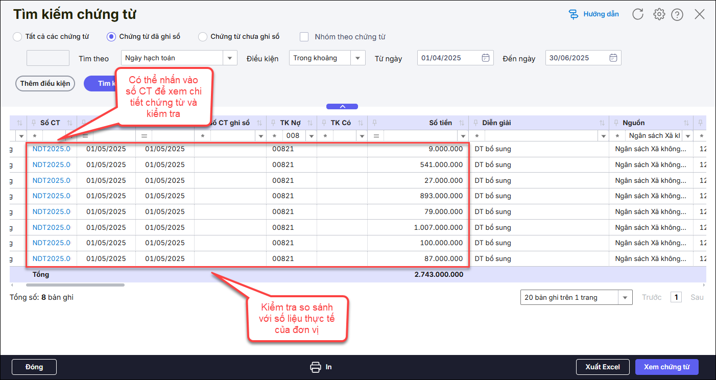 • Tìm theo: Ngày hạch toán