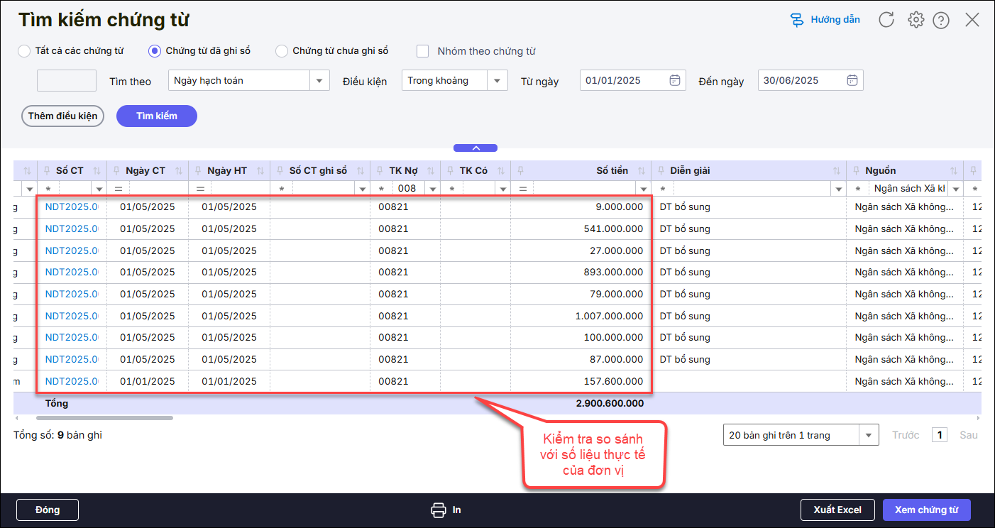 Bước 5: Kiểm tra từng chứng từ phát sinh với thực tế của đơn vị