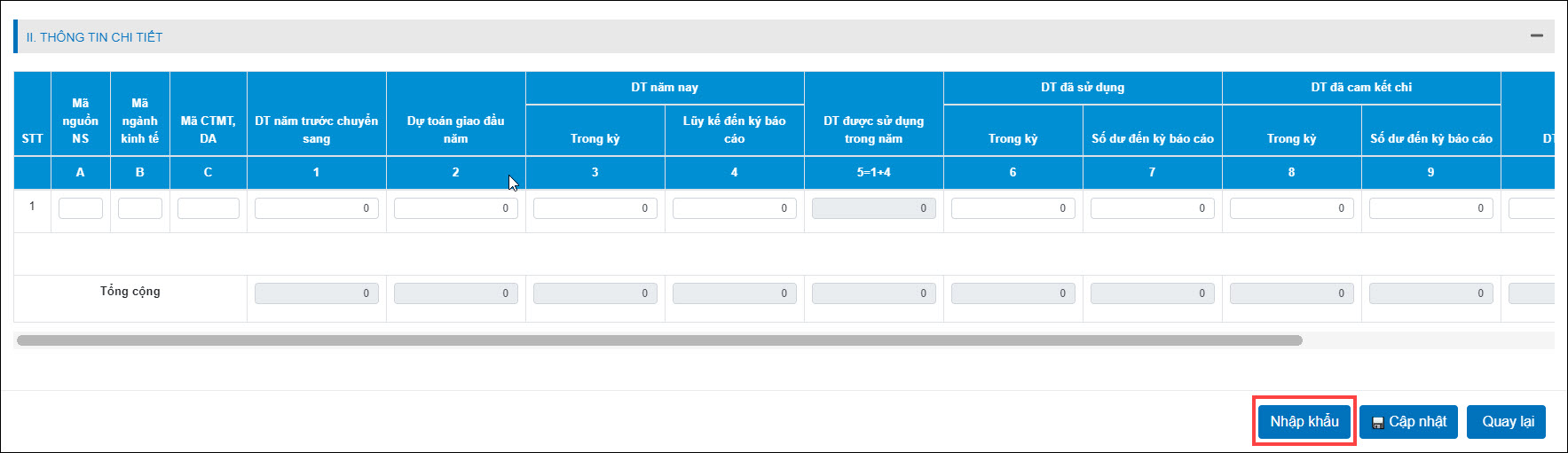 - Đăng nhập lại trang DVC trên trình duyệt Google Chrome sẽ thấy có nút Nhập khẩu trong phần báo cáo đối chiếu mẫu số 01a và 02a.