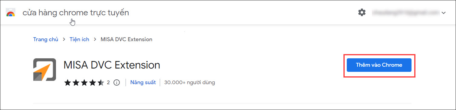 - Nhấn Thêm tiện ích (Add Extensions) để thêm MISA DVC Extension vào cửa hàng chrome trực tuyến.