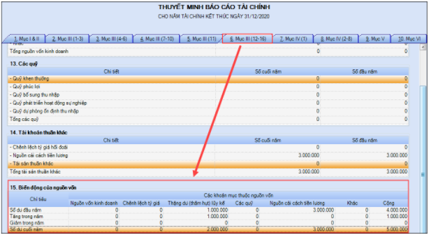 Giá trị chỉ tiêu [Số dư cuối năm] Nguồn vốn kinh doanh thuộc Mục III.15 trên báo cáo B04/BCTC không bằng giá trị chỉ tiêu [Số dư đầu năm + Tăng trong năm – Giảm trong năm]