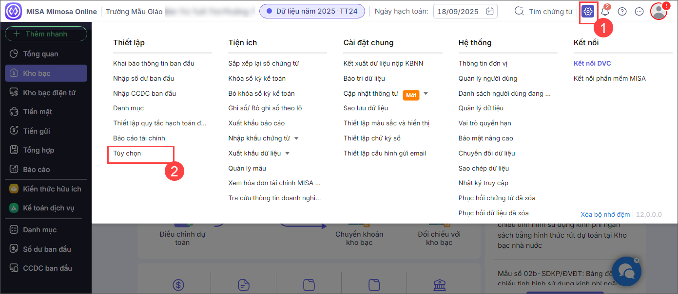 Bước 1: Vào biểu tượng Bánh răng ⚙️ (góc phải phía trên)\Thiết lập\Tùy chọn.