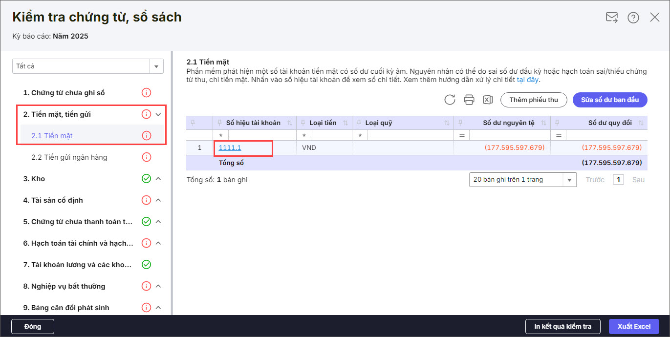 2.1. Kiểm tra tiền mặt