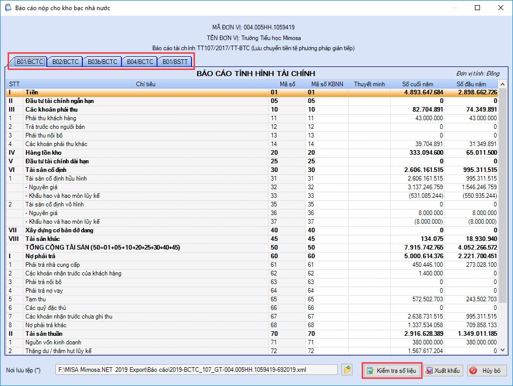 5. Chọn các báo cáo để xem: B01/BCTC, B02/BCTC, B04/BCTC, B03a/BCTC hoặc B03b/BCTC, B01/BSTT.