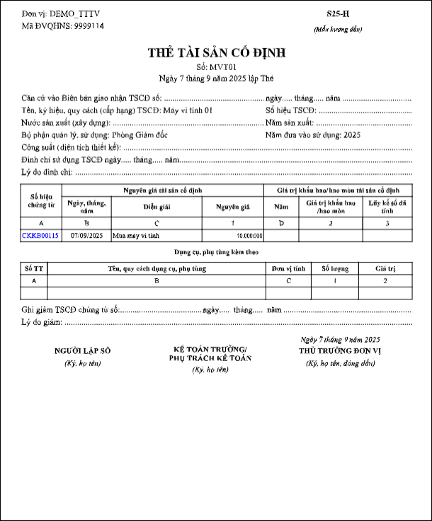 Bước 4. In được mẫu Thẻ Tài sản cố định
