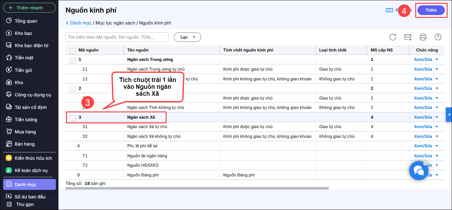 Ví dụ: Nguồn KP tặng quà nhân dân thuộc Ngân sách Xã => Mã nguồn kinh phí là 3.4 Tương tự, nếu thuộc Ngân sách Tỉnh là 2.4, Ngân sách Trung ương là 1.4