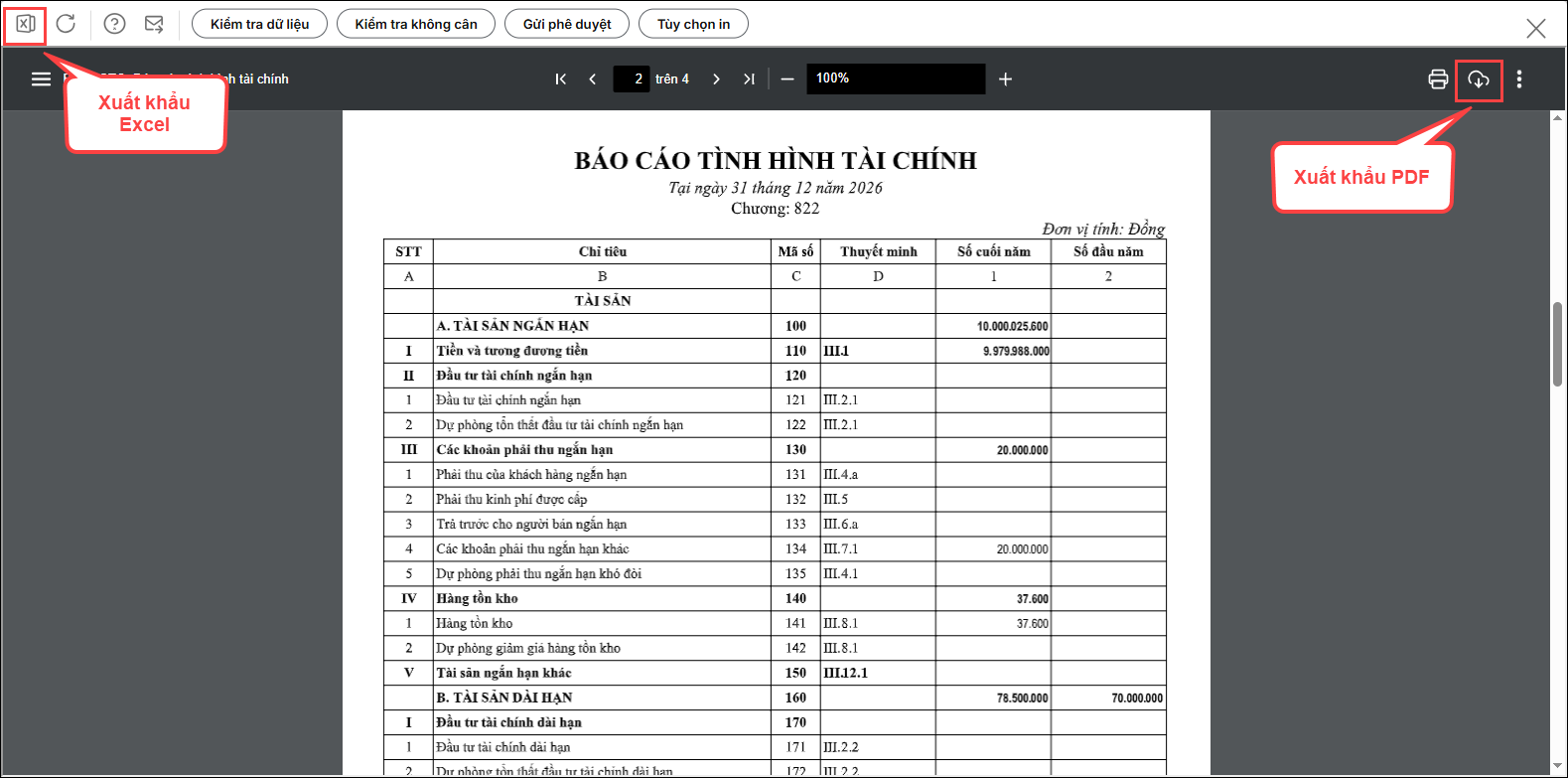 Bước 2: Thực hiện xuất khẩu Excel hoặc PDF theo nhu cầu