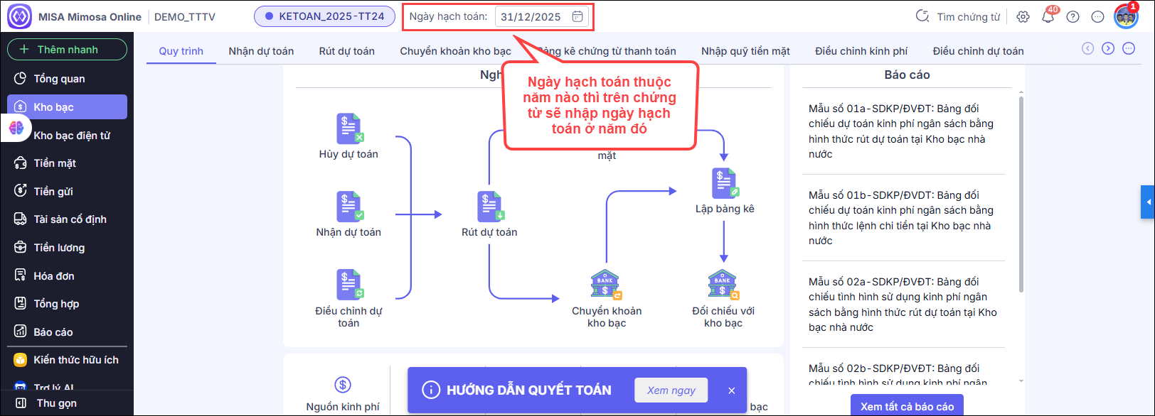 Ví dụ: Nếu muốn nhập chứng từ năm 2026 trên dữ liệu năm 2025: