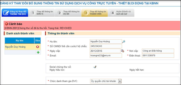 Bài viết này đưa ra nguyên nhân và cách xử lý khi thực hiện đăng ký thay đổi hoặc bổ sung thông tin trên hệ thống DVC KBNN mà xuất hiện cảnh báo “Chứng thư số đã bị thu hồi (Trạng thái: Revoked)”