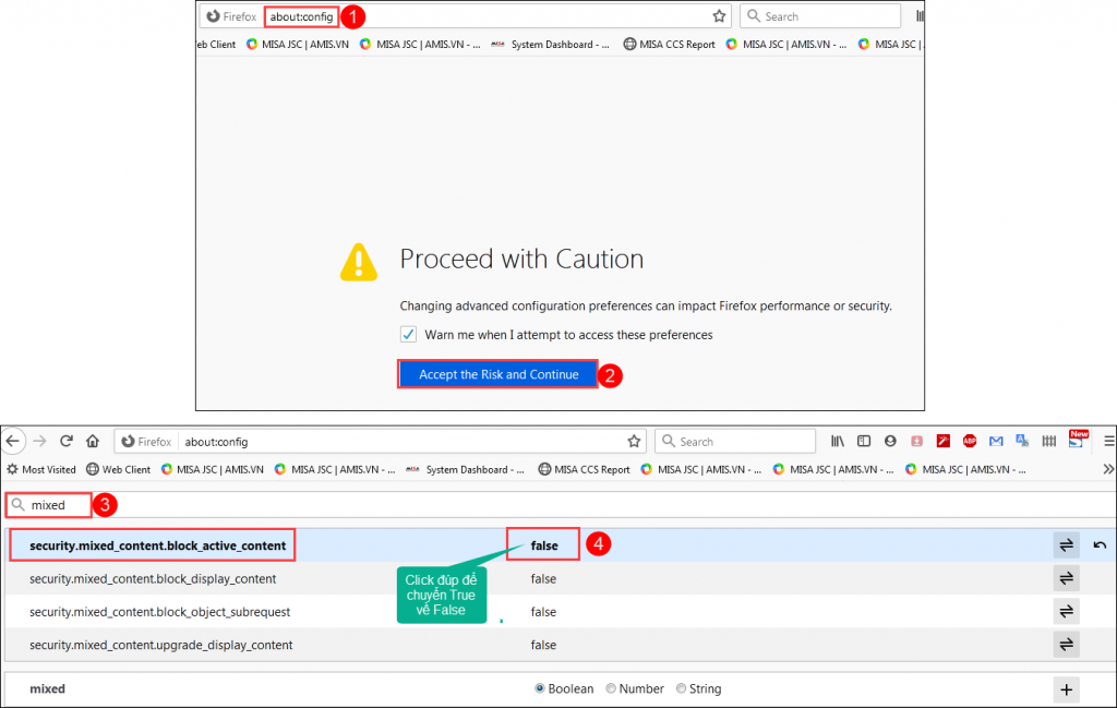 Nguyên nhân 3: Không vào DVC bằng trình duyệt firefox hoặc có vào bằng firefox nhưng chưa cấu hình tham số trong about:config đúng hướng dẫnGiải pháp: Đăng nhập lại trang DVC bằng trình duyệt Firefox và Lưu ý cấu hình firefox như sau: