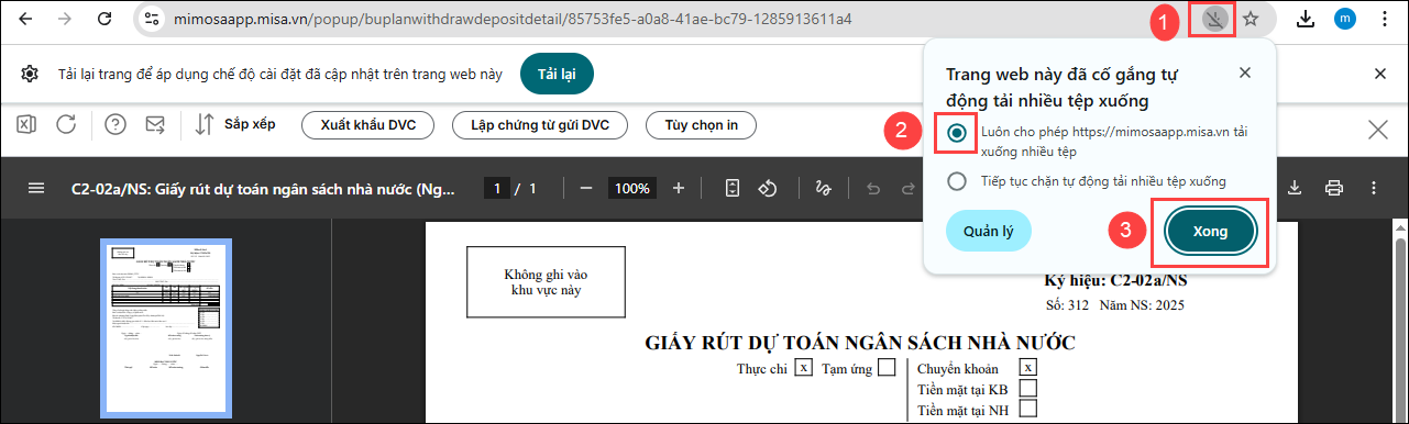 Bài viết này hướng dẫn cách xử lý khi đã nhấn xuất khẩu DVC trên màn hình chứng từ kho bạc nhưng không thấy file được tải xuống do trình duyệt đang chặn cửa sổ bật lên (popup), hoặc xem danh sách tải xuống trình duyệt web báo “Cần có quyền để tài xuống”.