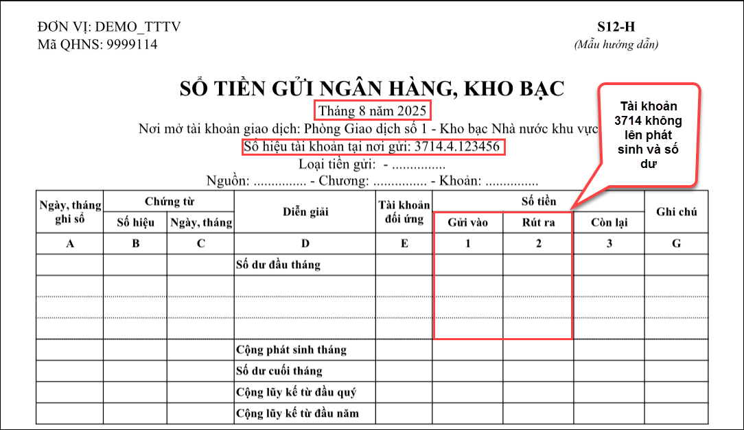 - Vào Báo cáo\Tiền gửi \S12-H: Sổ tiền gửi Ngân hàng, Kho bạc chọn tham số: