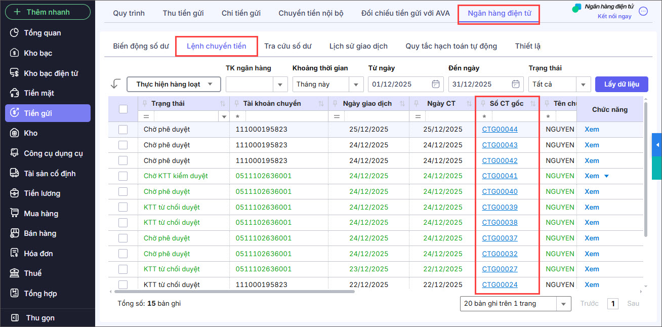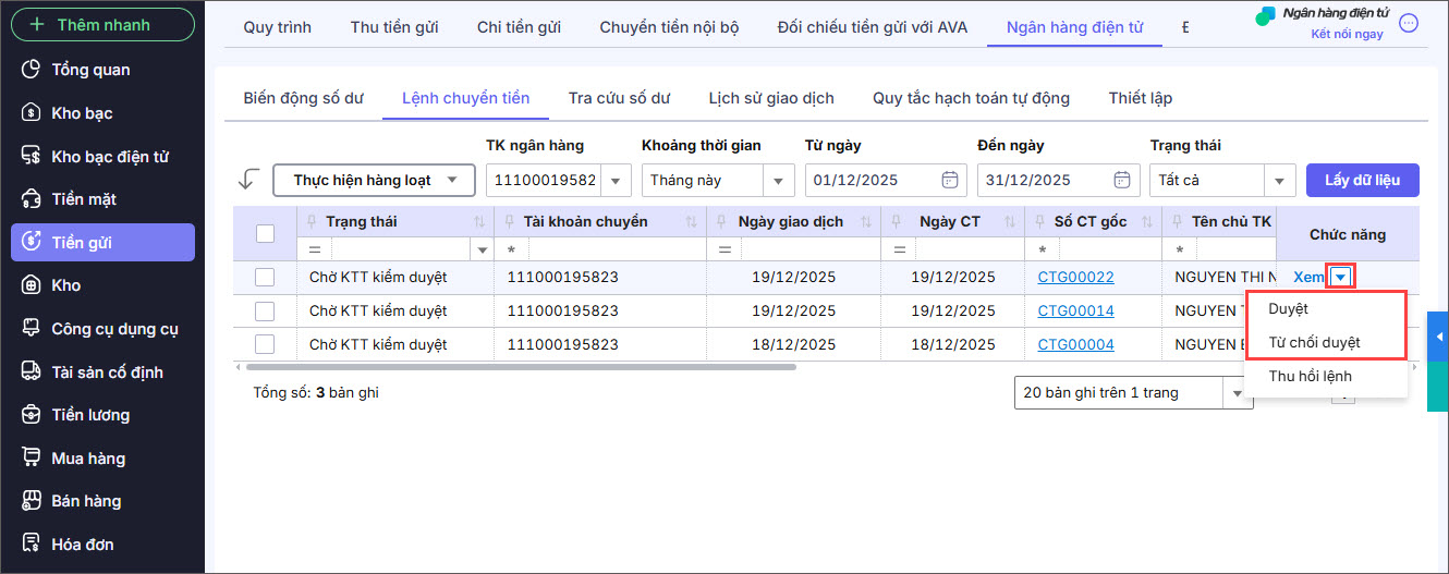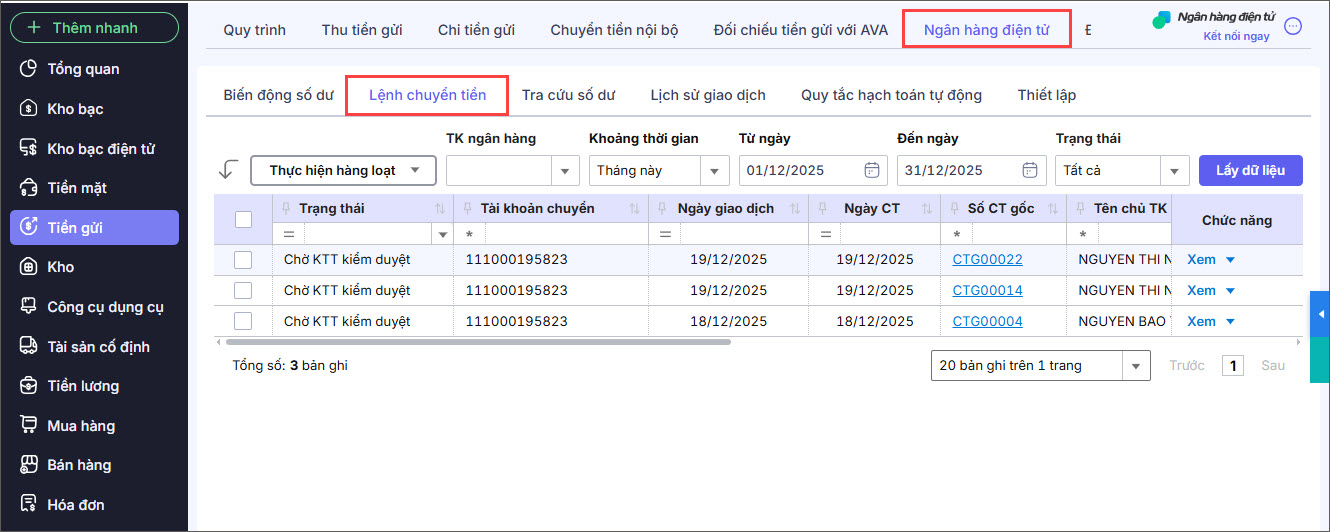 Bài viết này hướng dẫn kế toán viên, kế toán trưởng thực hiện chuyển tiền trực tuyến qua Ngân hàng điện tử trên phần mềm, đảm bảo quy trình kiểm duyệt, phê duyệt và an toàn giao dịch theo đúng phân quyền.