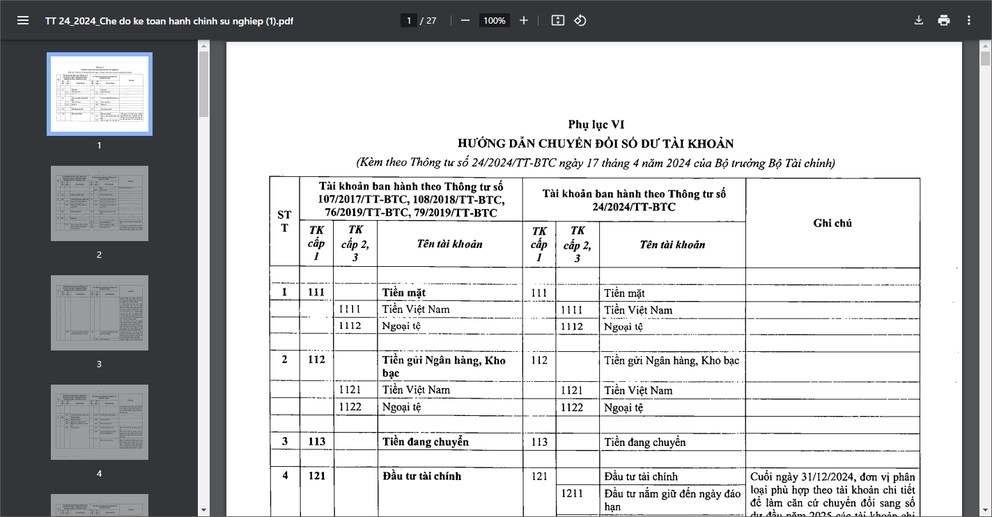 >>> Xem Hướng dẫn chuyển đổi số dư tài khoản (kèm theo Thông tư 24/2024/TT-BTC ngày 17/04/2024 của Bộ tài chính)