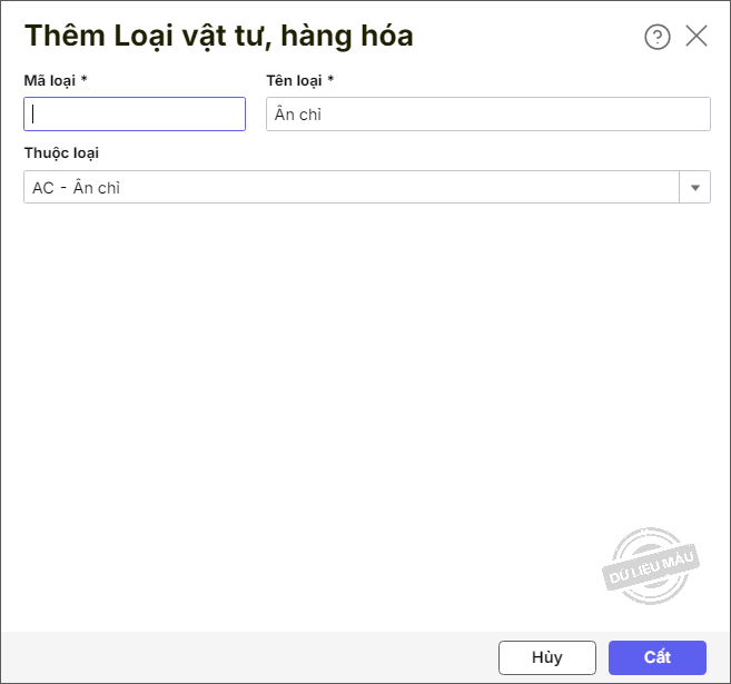 Bước 3: Nhập Mã loại, Tên loại. Chọn Thuộc loại.