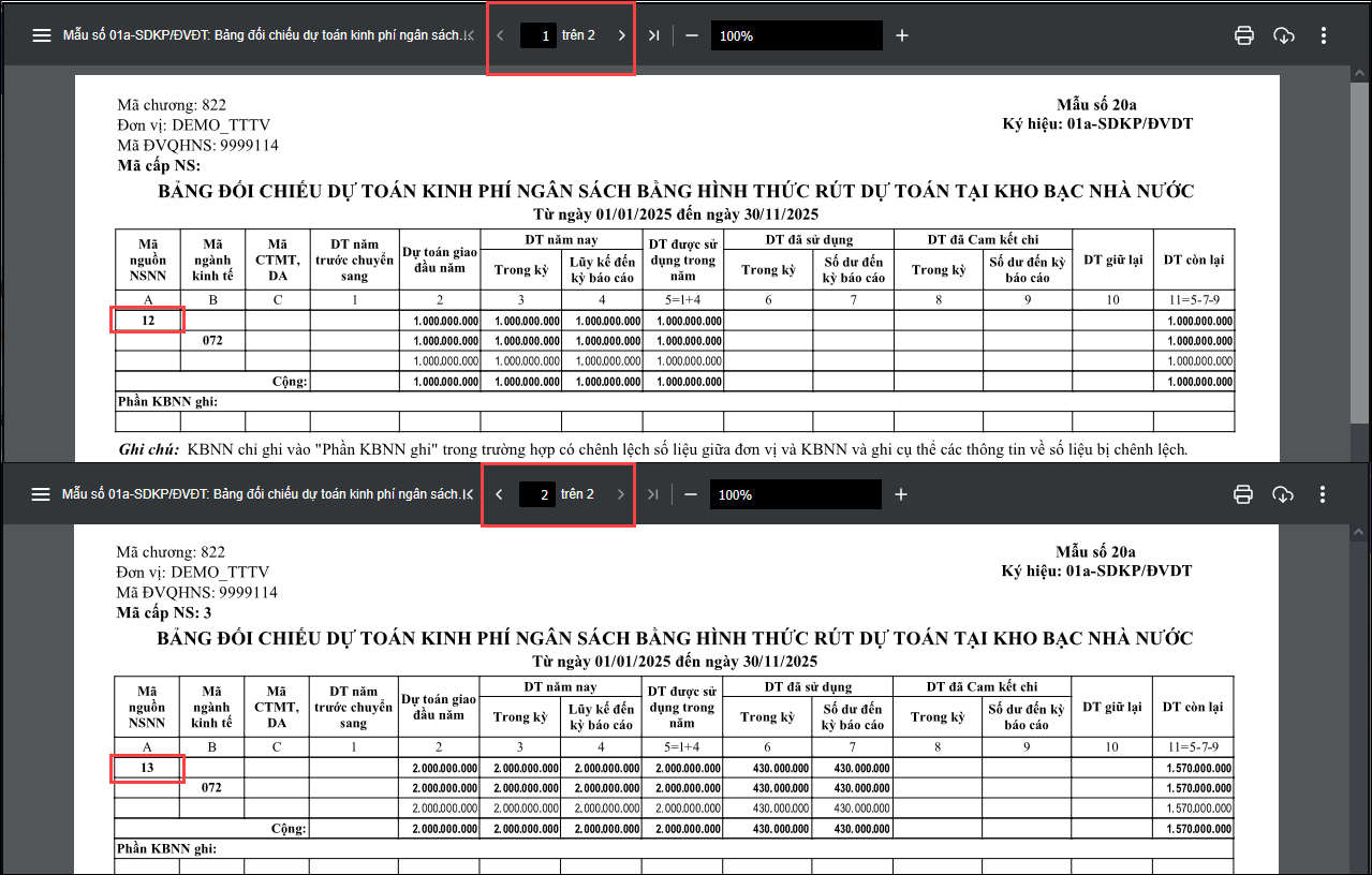 2.1. Nguyên nhânDo nguồn đó trong danh mục Nguồn kinh phí bị để trống mã cấp ngân sách hoặc đã nhập mã cấp ngân sách rồi nhưng không giống với mã cấp ngân sách của các nguồn còn lại.