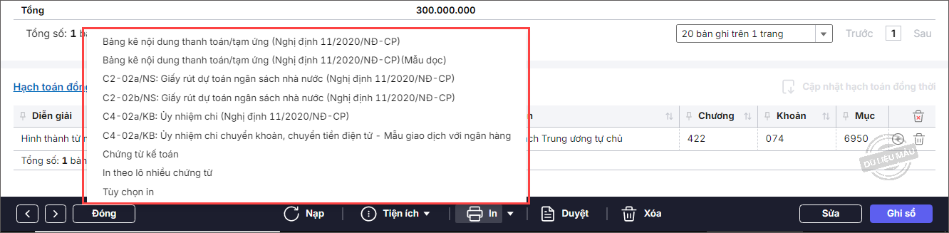 - Để in được Ủy nhiệm chi, anh/chị vào In chọn mẫu C4-02a/KB: Ủy nhiệm chi (Nghị định 11/2022/NĐ-CP)