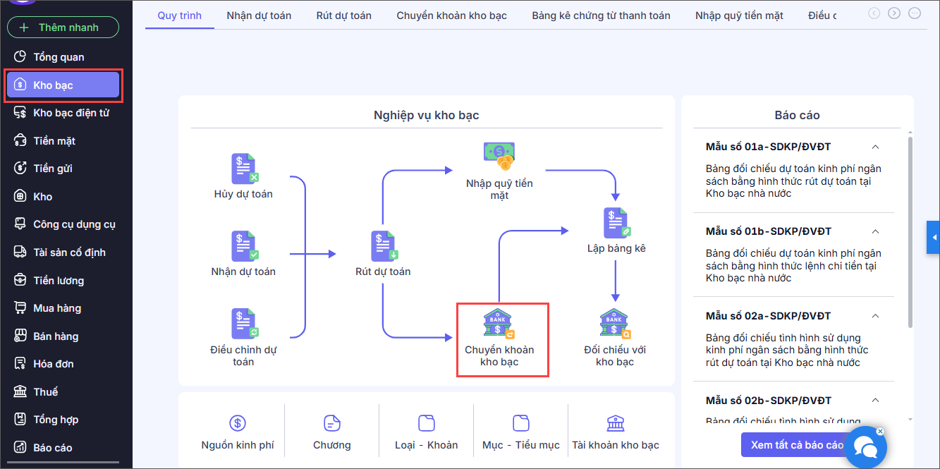 Bước 1: Vào Kho bạc\Chuyển khoản kho bạc.