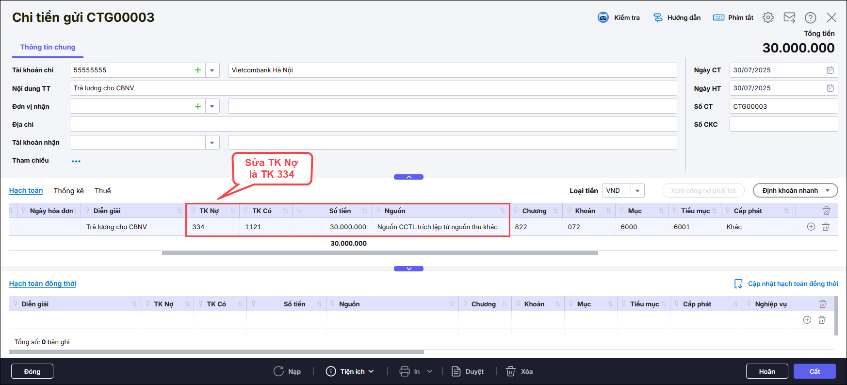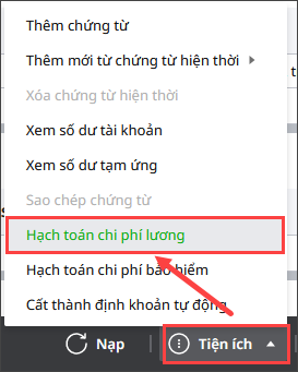 Bước 2: Chi lương: (Ủy nhiệm chi qua ngân hàng)