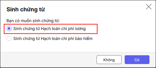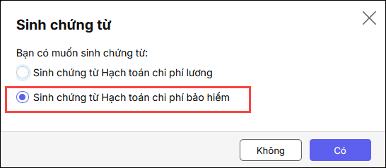 Bước 4: Phần mềm tự động sinh chứng từ hạch toán chi phí bảo hiểm và bảo hiểm trích vào lương ở chứng từ nghiệp vụ khác