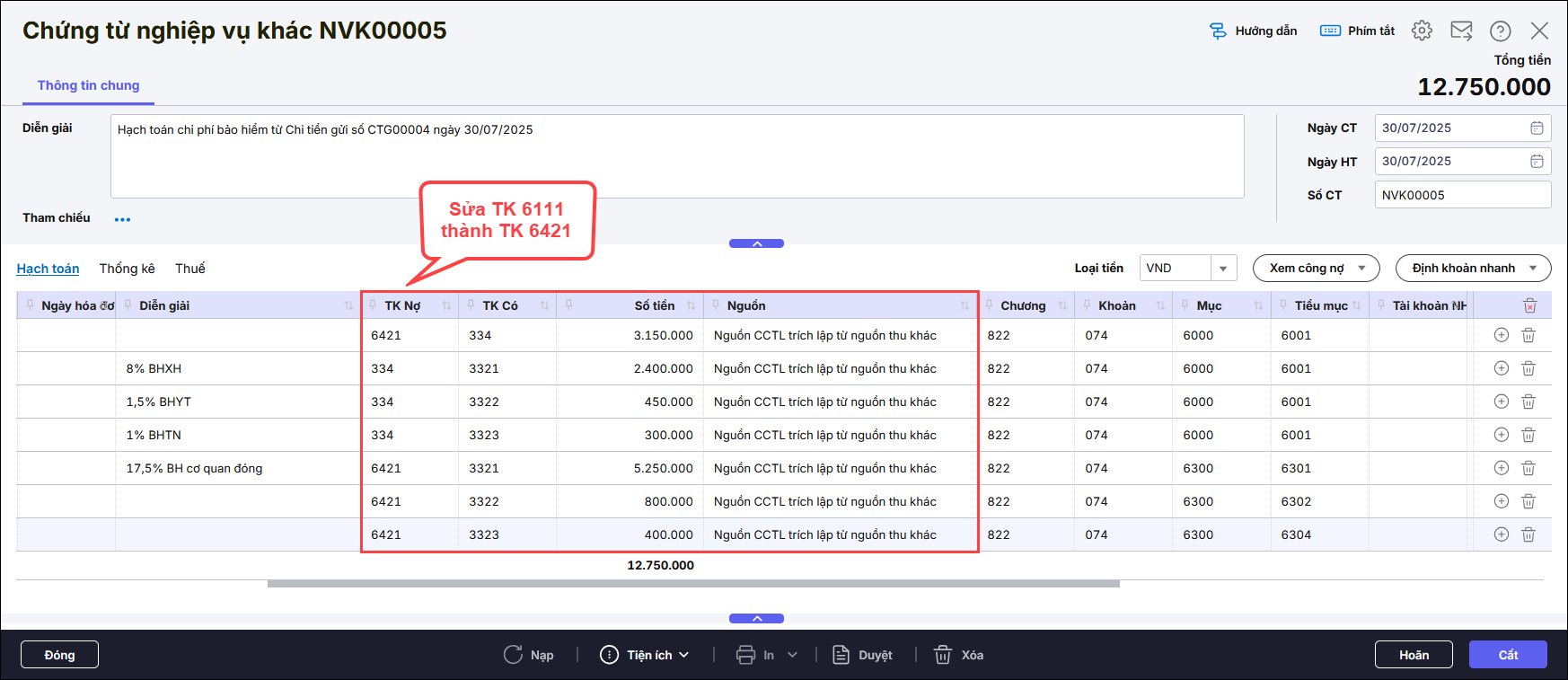 - Hướng dẫn định khoản trích lập, chi lương bảo hiểm từ nguồn CCTL