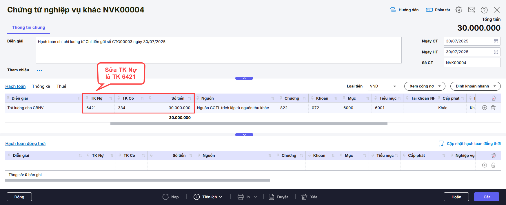 - Khi nhập chứng từ nhận dự toán nguồn không tự chủ không cập nhật được hạch toán đồng thời?