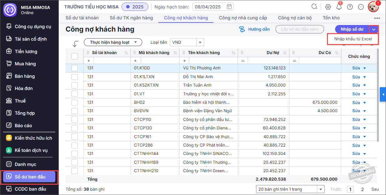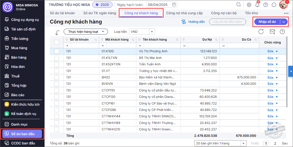 Bài viết này hướng dẫn anh/chị cách nhập số dư công nợ đầu kỳ chi tiết cho từng khách hàng (ví dụ: TK 131, TK 1388…), đảm bảo theo dõi và quản lý công nợ phải thu một cách đầy đủ, chính xác ngay từ đầu kỳ kế toán.