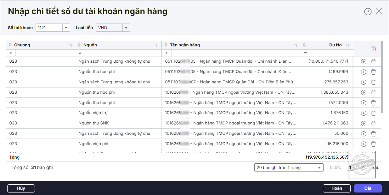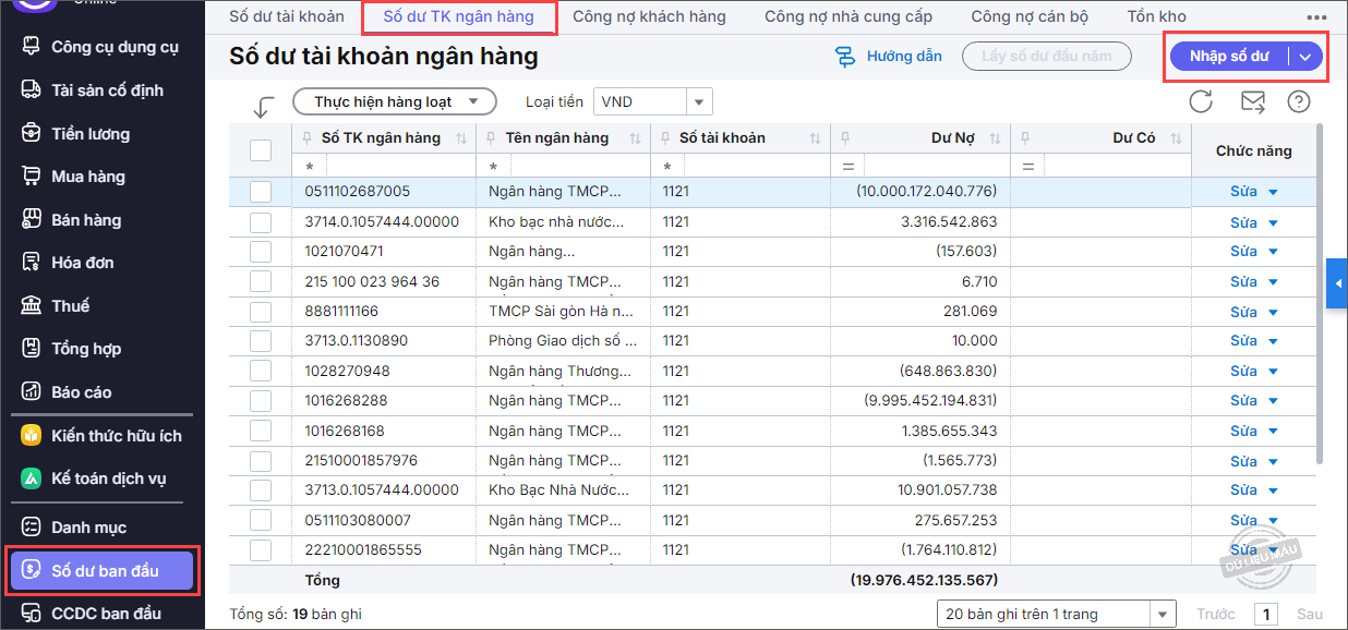 Nội dung bài viết gồm: Khai báo Danh sách tài khoản Ngân hàng, cách nhập số dư đầu kỳ trường hợp nhập bằng tay hoặc nhập khẩu số dư từ excel
