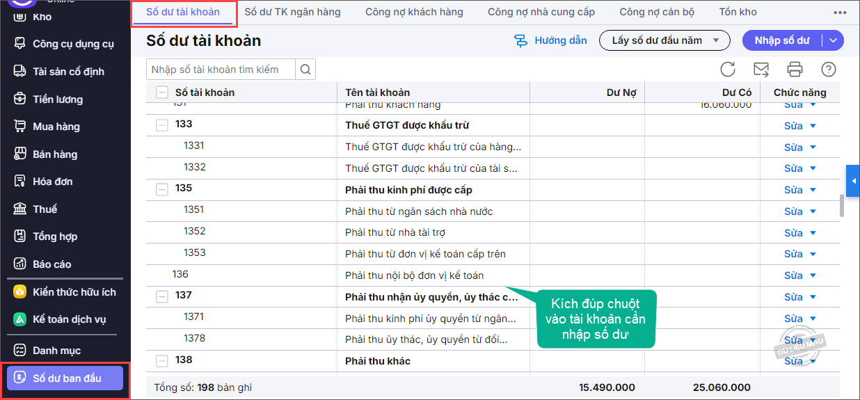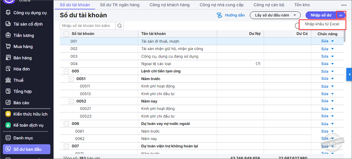 Nội dung bài viết gồm: Cách thực hiện nhập số dư vào phần mềm bằng tay hoặc nhập khẩu số dư từ excel