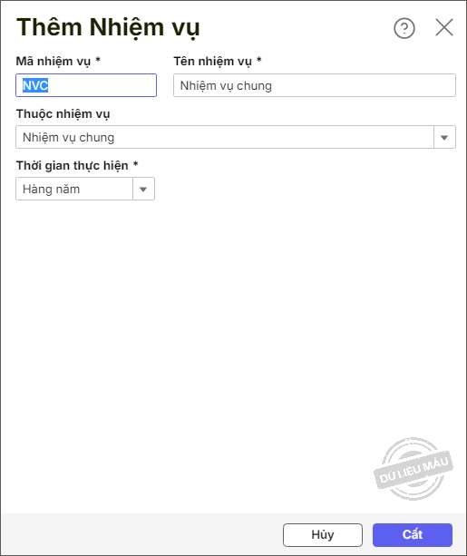 Bước 5: Nhấn Cất. 2.3. Sửa nhiệm vụBước 1: Chọn menu Danh mục\Nhiệm vụ Bước 2: Nhấn Xem/Sửa