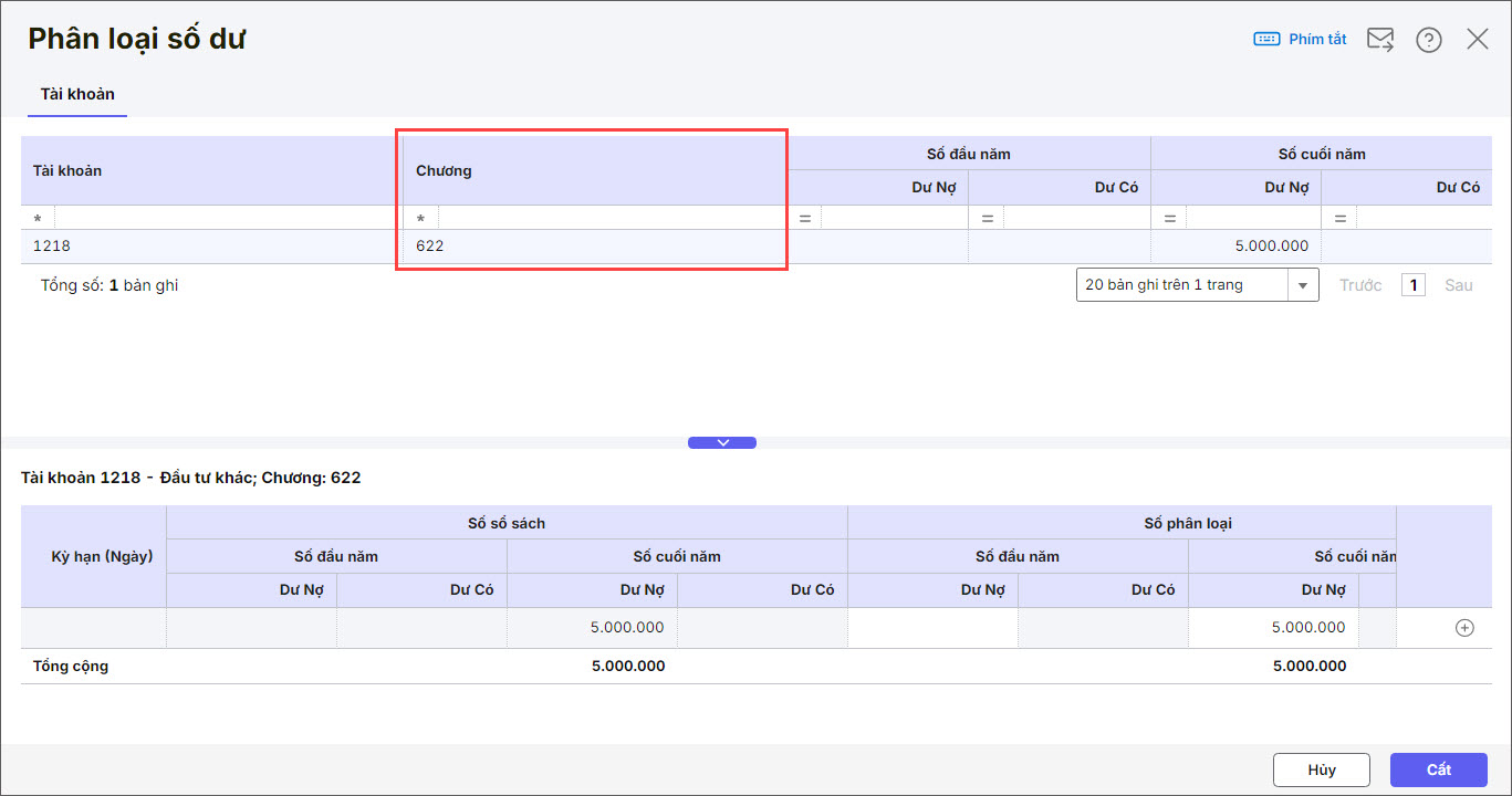 – Kể từ phiên bản R15: Trên chức năng Phân loại số dư, phần mềm bổ sung cột Chương, giúp bạn có thể phân loại số dư chi tiết theo từng chương.