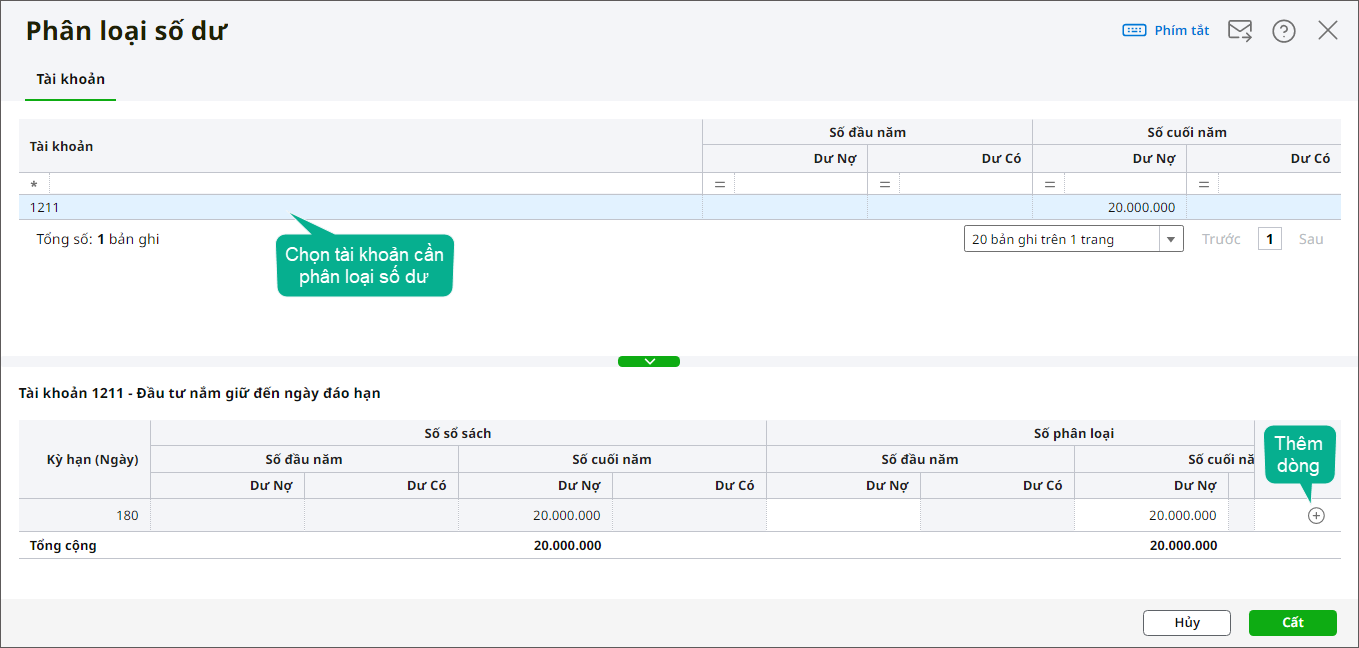 Bước 5: Chọn vào dòng tài khoản cần phân loại số dư.