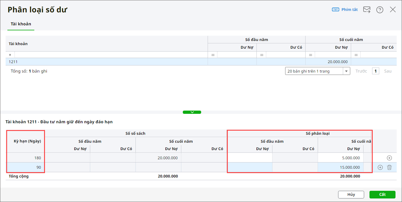 Bước 3: Chọn mục cần phân loại số dư, nhấn Phân loại số dư.