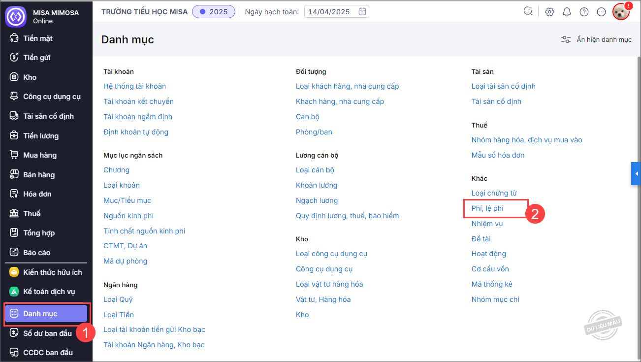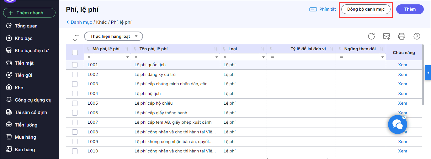 Bài viết này hướng dẫn anh/chị thêm, sửa quản lý danh mục Phí, lệ phí hoặc lấy danh mục phí, lệ phí từ bumas để phản ánh đúng các khoản phí, lệ phí phát sinh theo quy định ngân sách nhà nước.