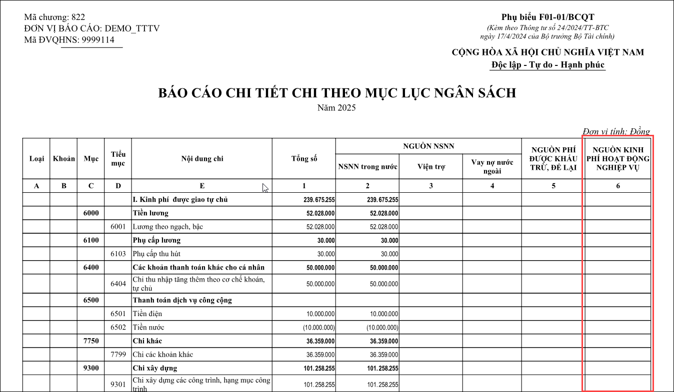 Bài viết này hướng dẫn anh/chị cách xử lý khi có phát sinh nghiệp vụ thu chi ở nguồn viện phí, thu nguồn xây dựng, thu liên kết, thu viện phí,..và 1 số nguồn khác và đã hạch toán chi theo đúng hướng dẫn tại đây.Tuy nhiên khi xem Phụ biểu F01-01/BCQT, tại cột 6 – Nguồn kinh phí hoạt động nghiệp vụ thì thấy không hiển thị số liệu.