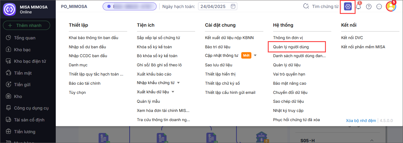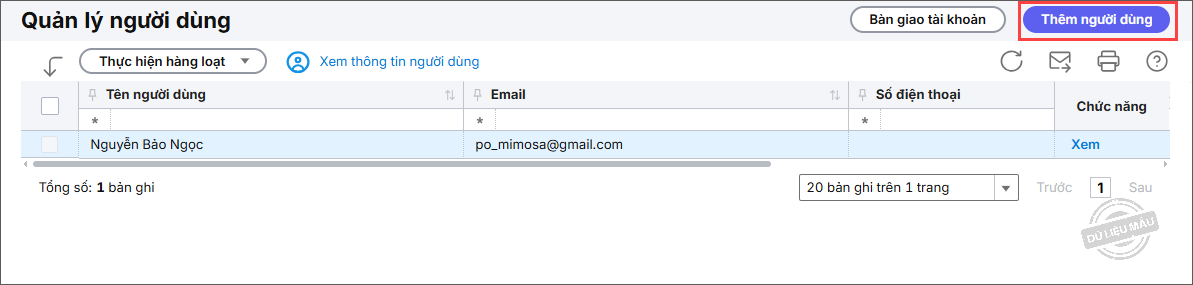 2.1 Thêm người dùngBước 1: Vào Bánh răng ⚙\Hệ thống\Quản lý người dùng.