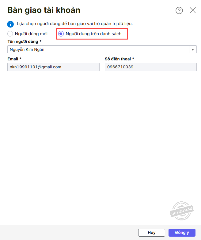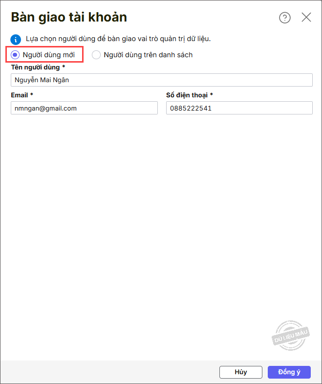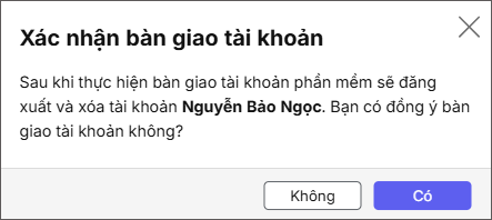 2.2 Bàn giao tài khoảnTrường hợp Quản trị hệ thống (Admin) chuyển công tác hoặc nghỉ hưu và cần bàn giao tài khoản cho người dùng khác thì làm như sau: