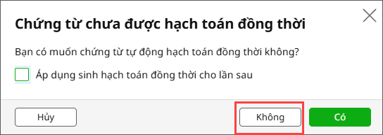 Bước 6: Nhấn Không trên câu thông báo để không sinh hạch toán đồng thời.