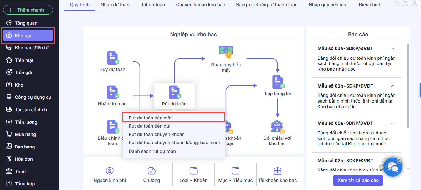 Quy trình rút dự toán tạm ứng đã cấp bằng tiền mặt