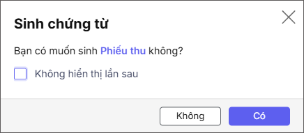 5. Hệ thống hiển thị màn hình thông báo “Bạn có muốn sinh Phiếu thu không?“. Nhấn Có.