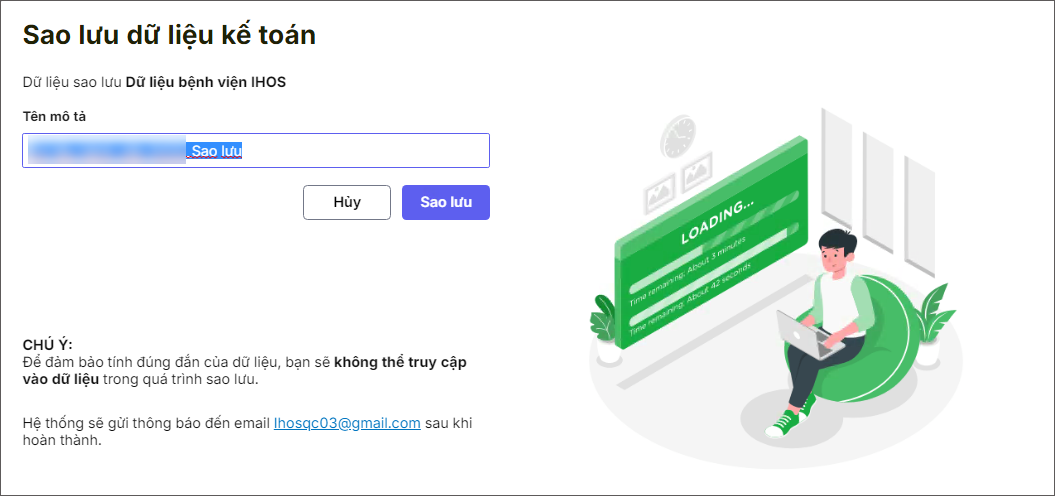 Bước 2: Nhập Tên mô tả dữ liệu sao lưu. Nhấn Sao lưu.