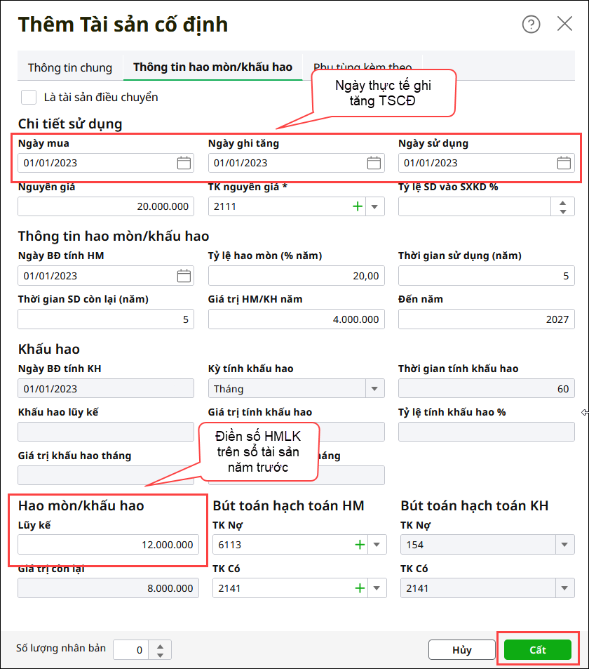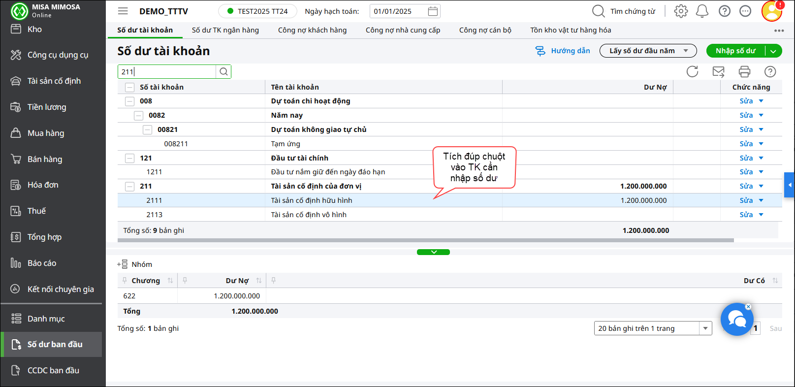 - Nhập số dư đầu kỳ các tài khoản TSCĐ