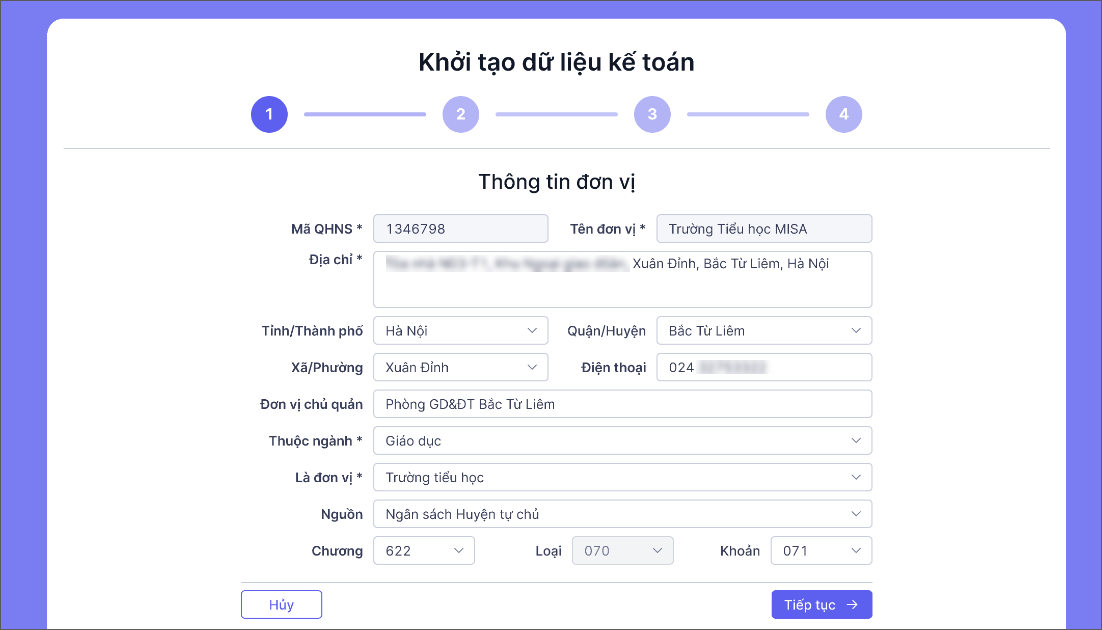 Bước 1: Khai báo và xác nhận Thông tin đơn vị