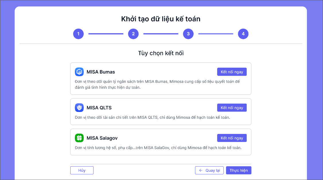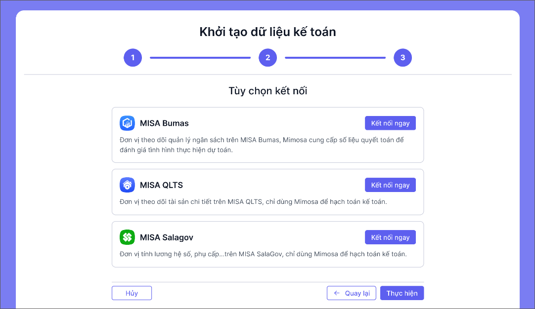 - Nhấn Kết nối ngay để kết nối với các phần mềm MISA khác.