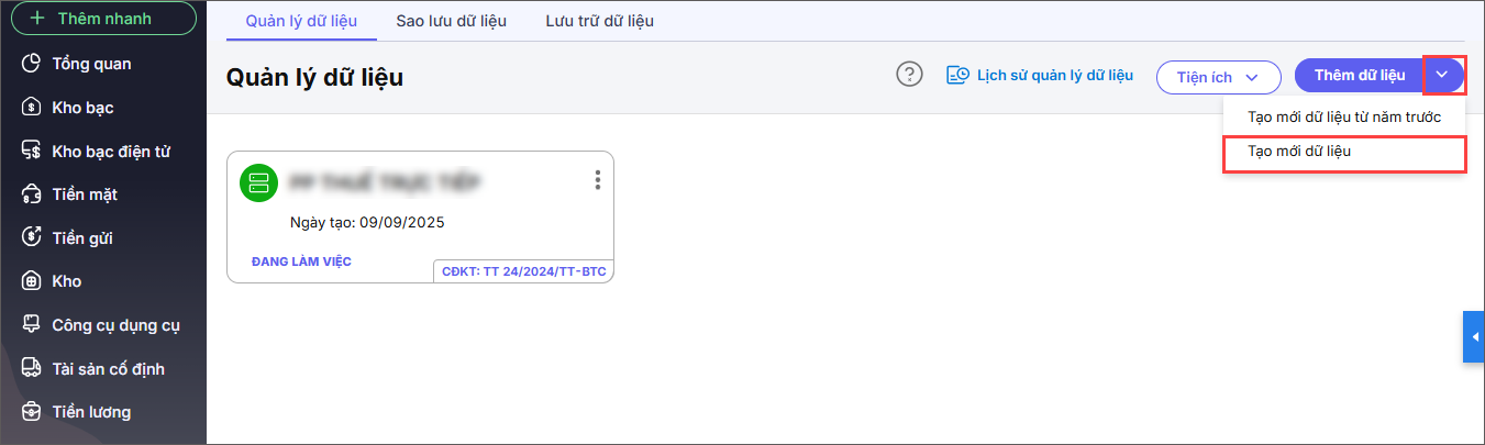 Trường hợp 2: Đã có dữ liệu kế toán và muốn tạo thêm dữ liệu khác