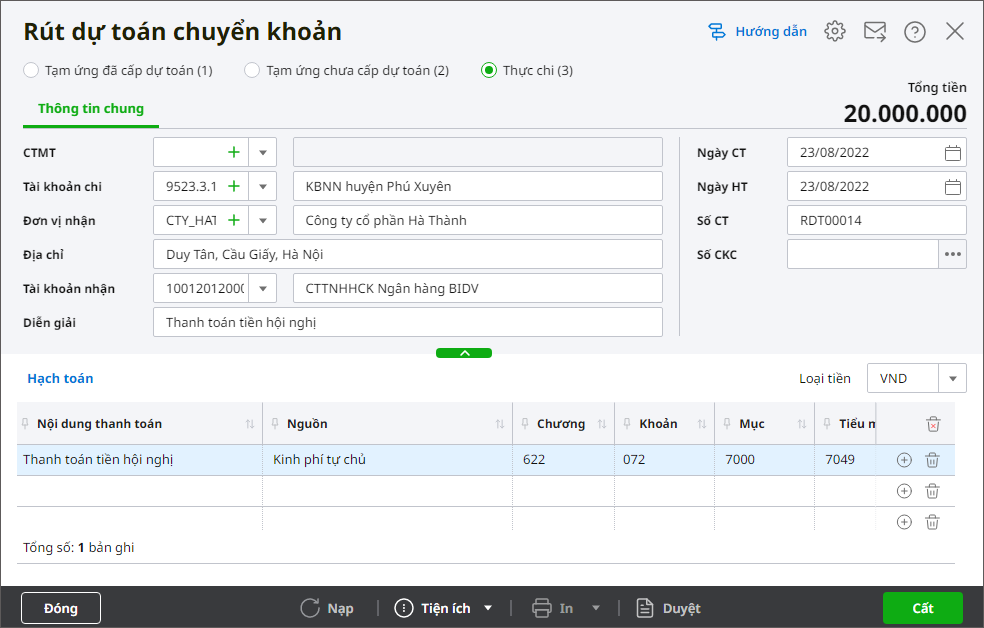 - Tích chọn Thực chi.
