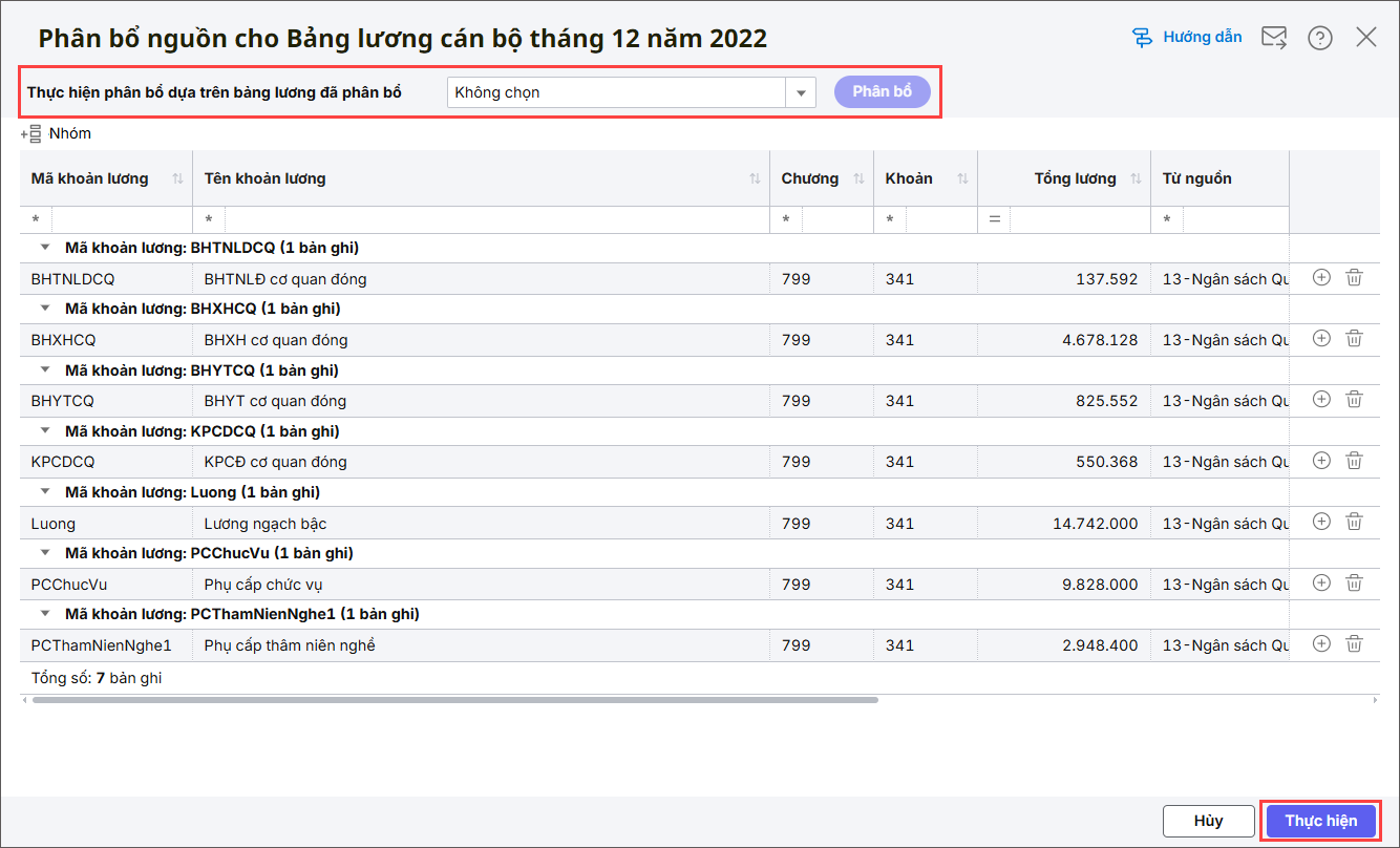 Bước 2: Trên giao diện “Phân bổ nguồn cho Bảng lương…“,
